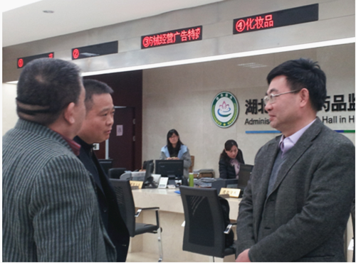 严振一行在湖北省局博天堂娱乐大厅、安徽省政务中心食品药品监管综合服务大厅实地考察了办理环境和流程,并与兄弟省局有关负责同志和处室进行了深入交流和探讨,认真了解当地行政审批集中办理和内设机构优化的背景、思路和历程,及具体工作举措和取得的成效。